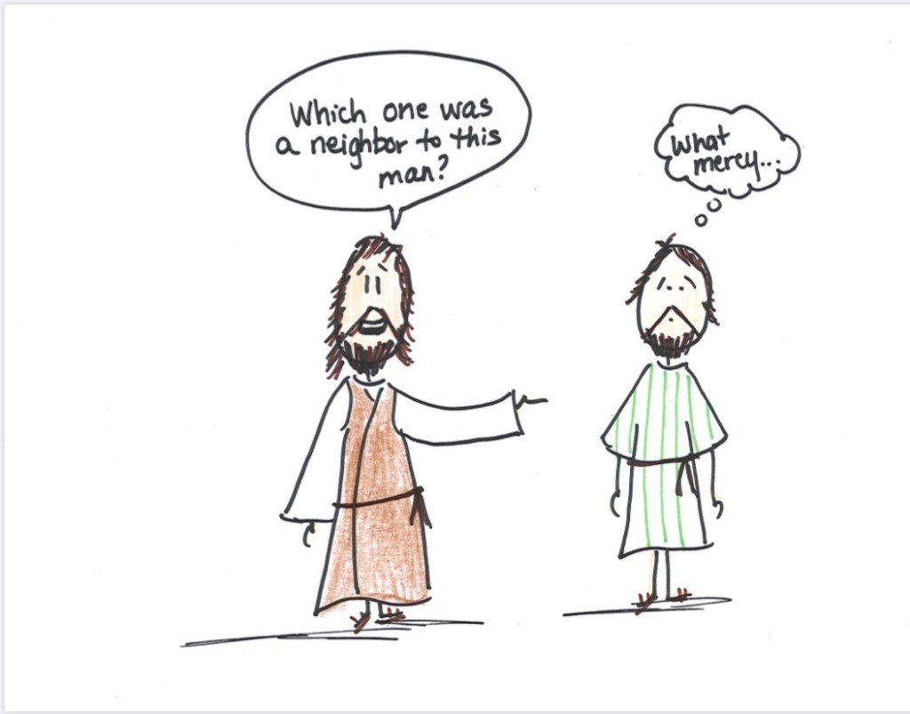 When Jesus finished the story, He turned to the man in the crowd and said, “Which of these three do you think was a neighbor to the man who was attacked by the robbers?”  The man said, “The one who showed him mercy.” He was talking about the Samaritan man. The Samaritan showed love and compassion and didn’t care that he was helping someone that his people hated. Jesus said, “Exactly. And that’s the way you should be to all people as well.
