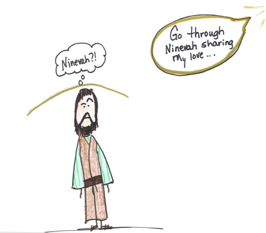 One day, God spoke to Jonah and said, “I want you to go to the city of Ninevah and tell the people to stop doing bad things. Tell them that if they will pray and ask for forgiveness, I will forgive them.”