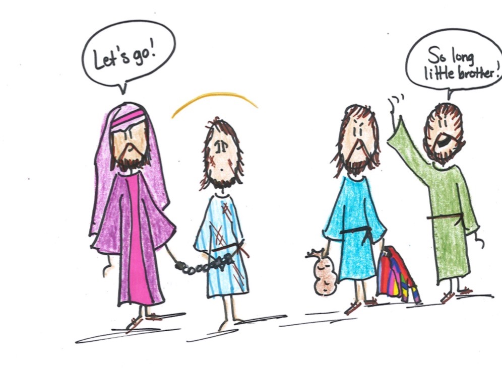 After Joseph was thrown into the pit, a group of travelers who sold items that they carried on their camels’ backs came their way. The brothers said, “We should sell our brother as a slave to these people when they pass by! Then he’ll be gone forever!” And that’s what they did. They sold Joseph as a slave to the travelers.