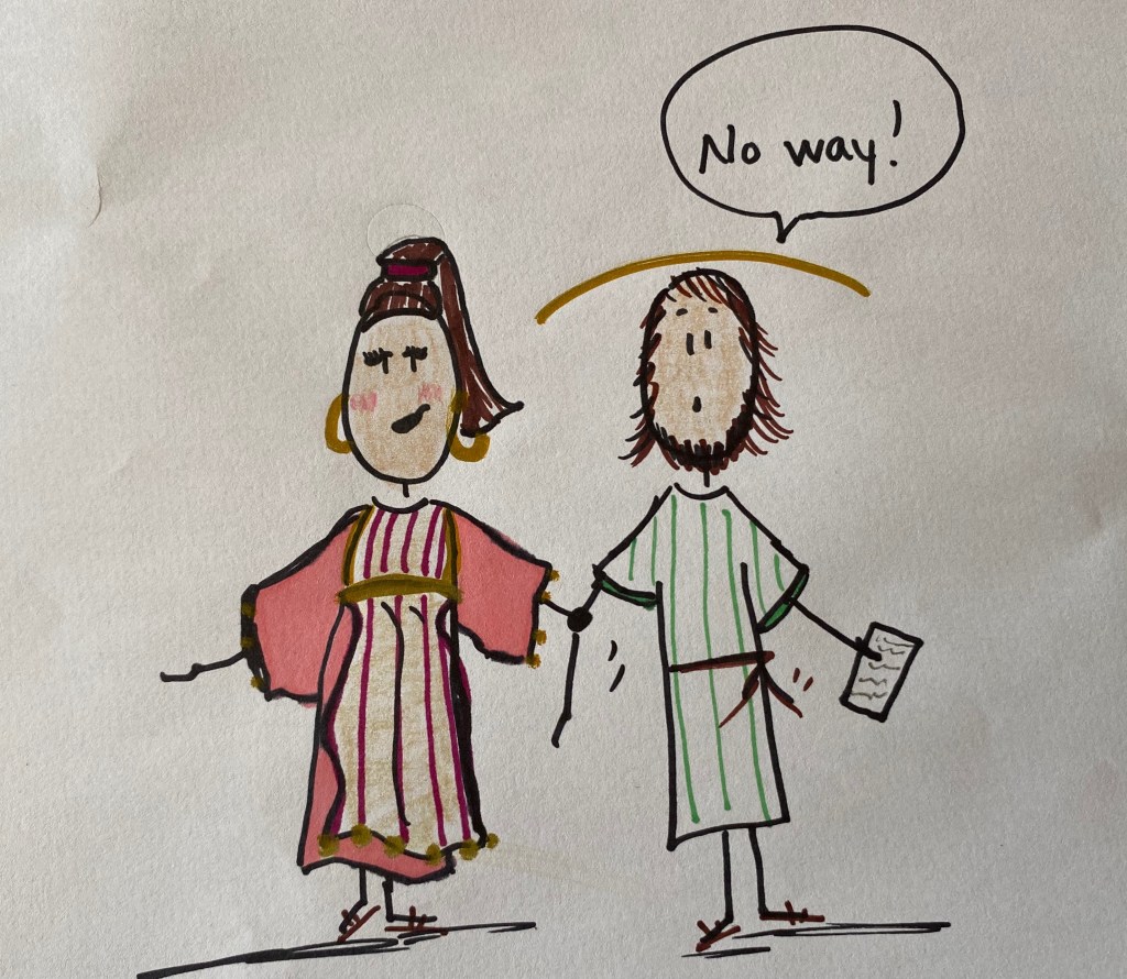 Potiphar’s wife was not a nice lady and while Potiphar was gone, she secretly asked Joseph to be her boyfriend! Joseph said, “I cannot do that! It’s wrong because you have a husband and he trusts me! Also, I do not want to sin against God!”
